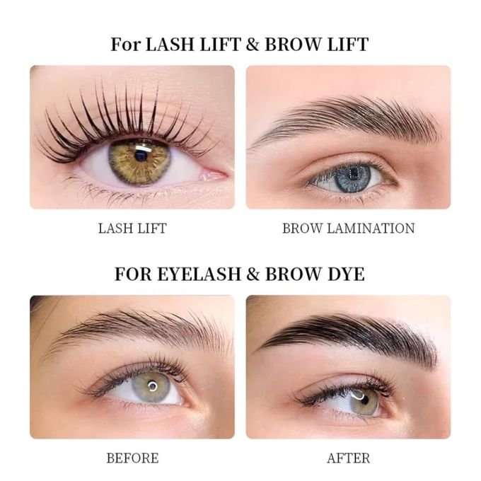 - Ce produit permet d’obtenir deux effets principaux : 1. Recourbement des cils. 2. Coloration : coloration des cils et des sourcils.